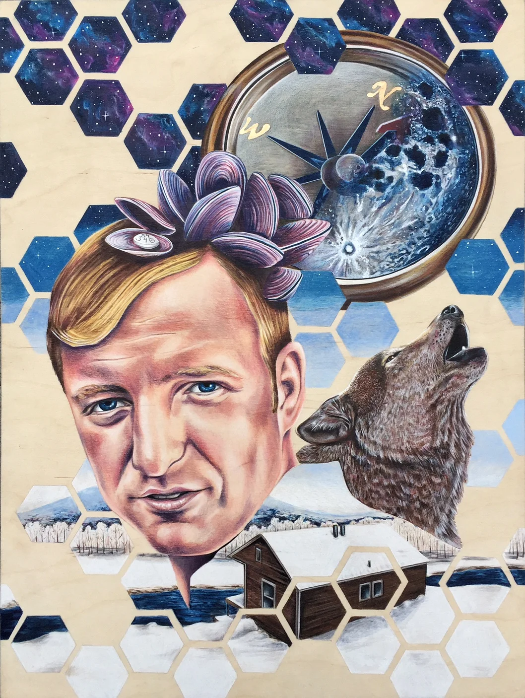 Daydream Believer | 18" x 24" Caran d'Ache Graphite, Le Plume Alcohol Markers, Caran d'Ache Luminance Colored Pencils, Charcoal, and Gilding Paint on Strathmore 400 Series Paper.